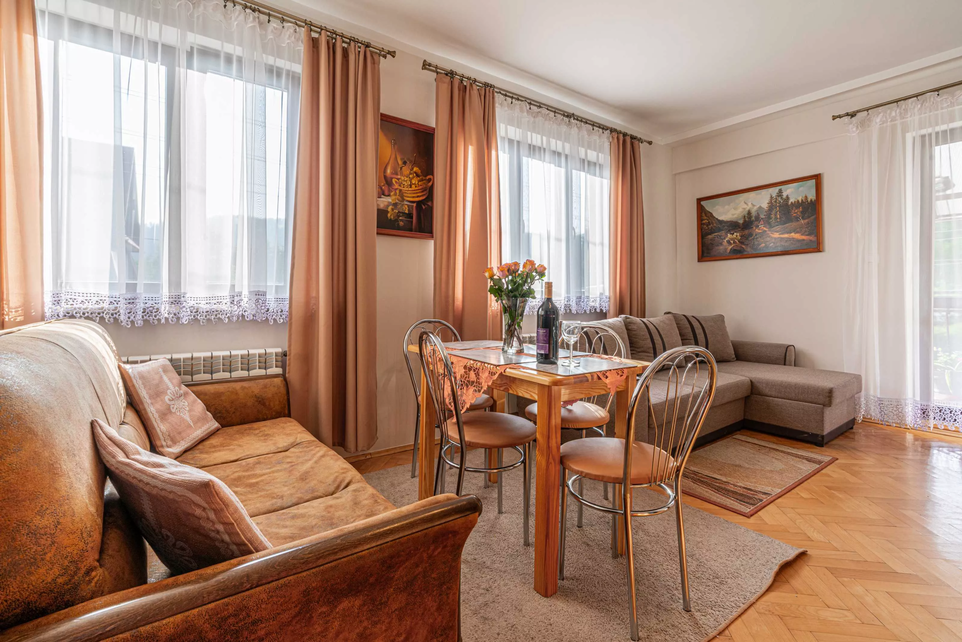 Witamy w Apartamencie nr 1 w Noclegi Kluśka – idealnej przestrzeni dla rodzin, przyjaciół lub grupy turystów poszukujących komfortowego zakwaterowania w sercu Zakopanego.